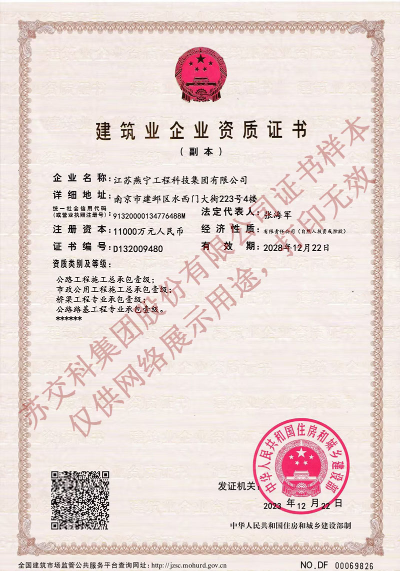 燕寧工科施工總承包壹級資質