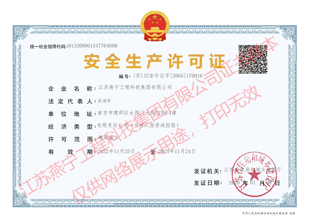 燕寧工科安全生產許可證