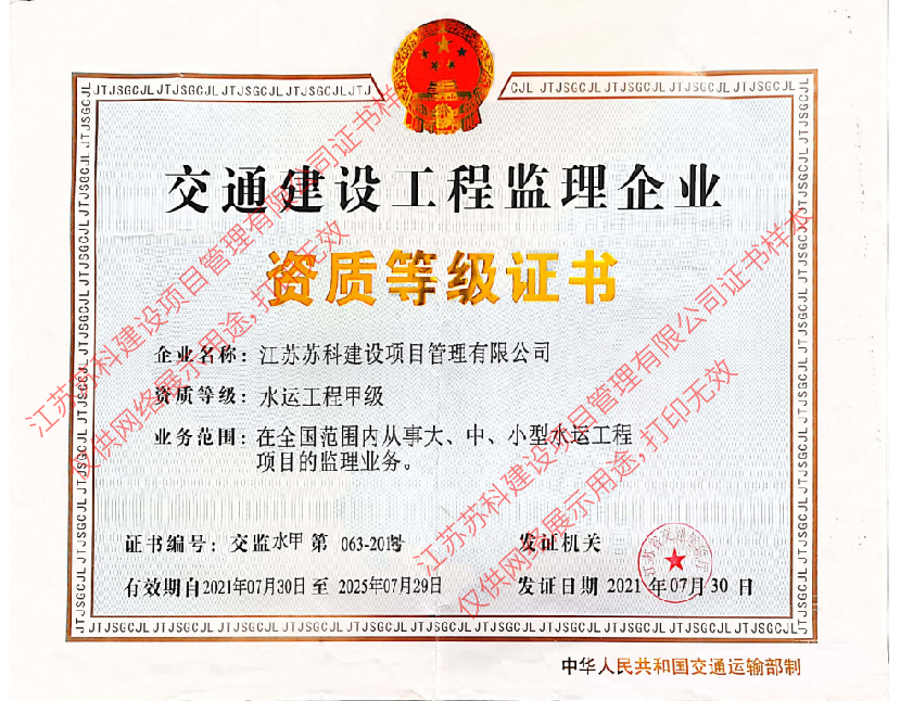 蘇科建設工程監理水運工程資質甲級
