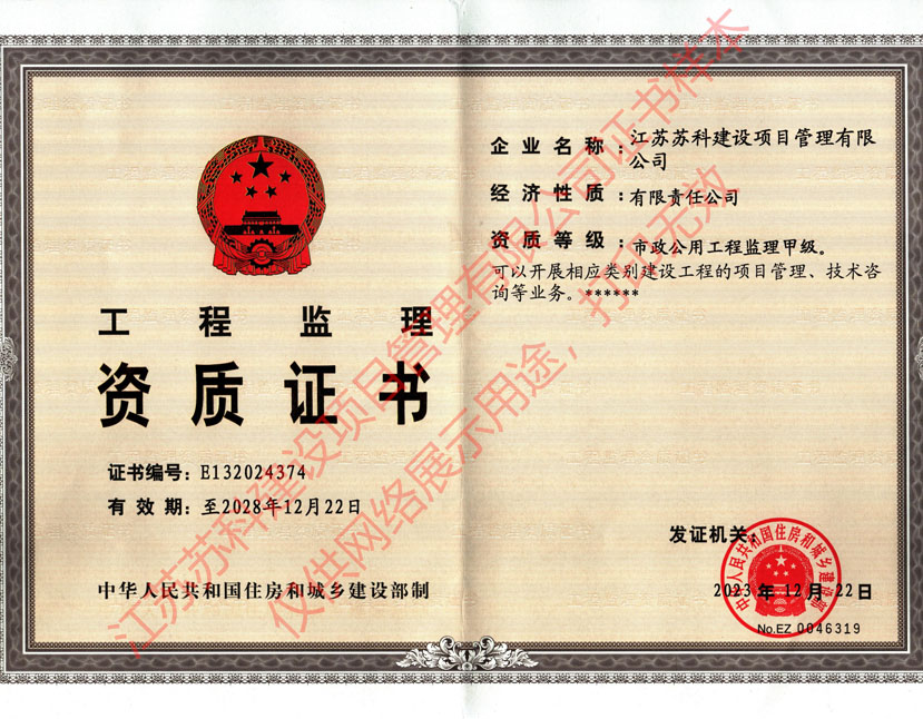 蘇科建設市政公用工程監理甲級