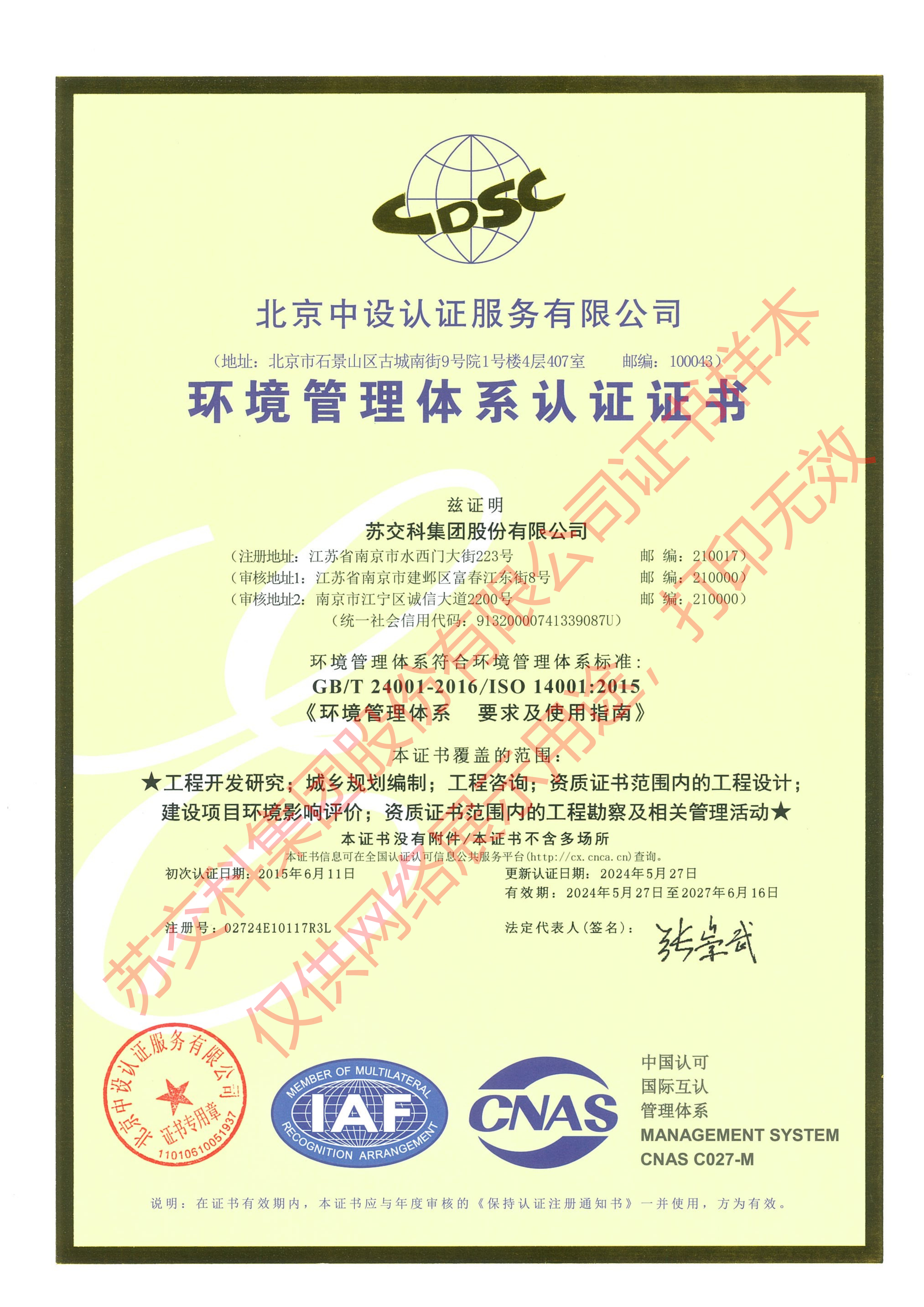 環境管理體系認證證書CN